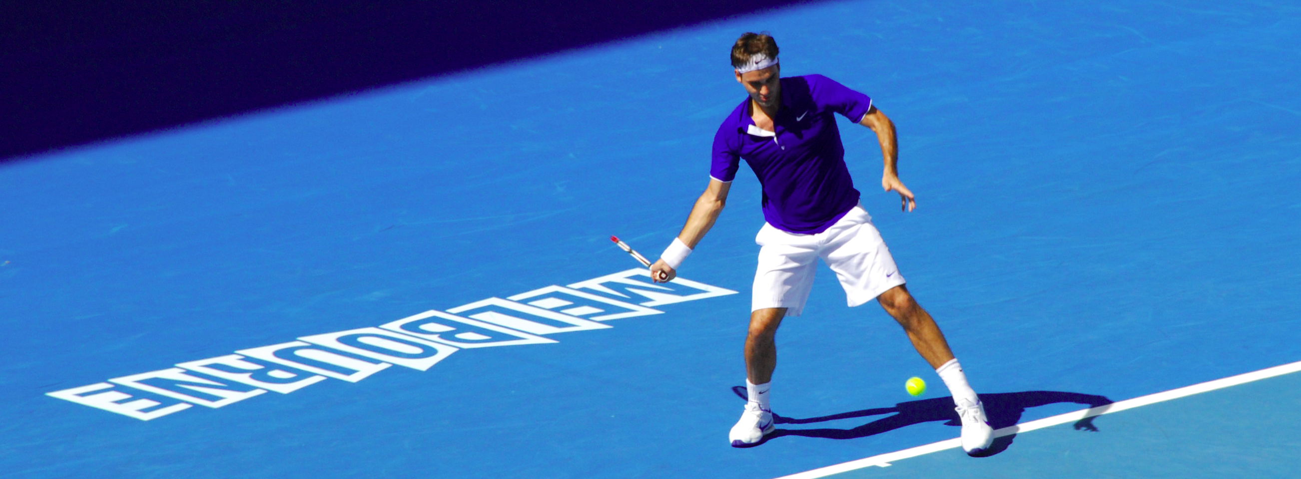 Roger Federer at full swing during the 2009 Australian Open. Picture: Richard Fisher